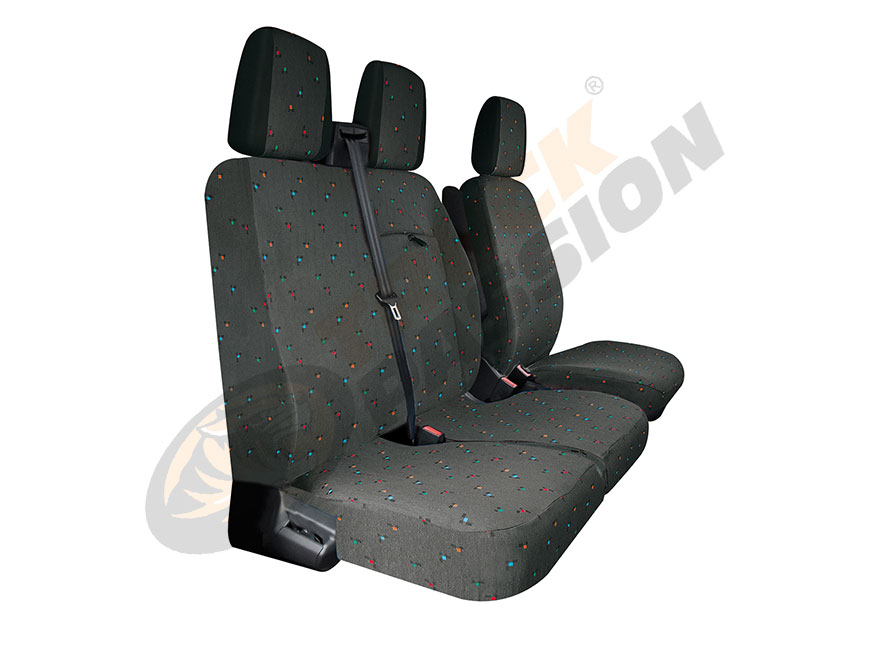 Fundas de asientos completas a medida, adaptables a FORD TRANSIT CUSTOM desde 2013. Respaldo de pasajero sin mesa.